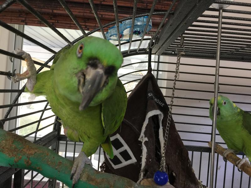 Both parrots now have cataracts affecting their vision, requiring additional monitoring and care.